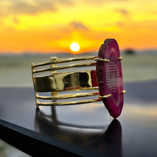 Akik Taşına Hilye-i Şerif İşlemeli Bakır Bileklik