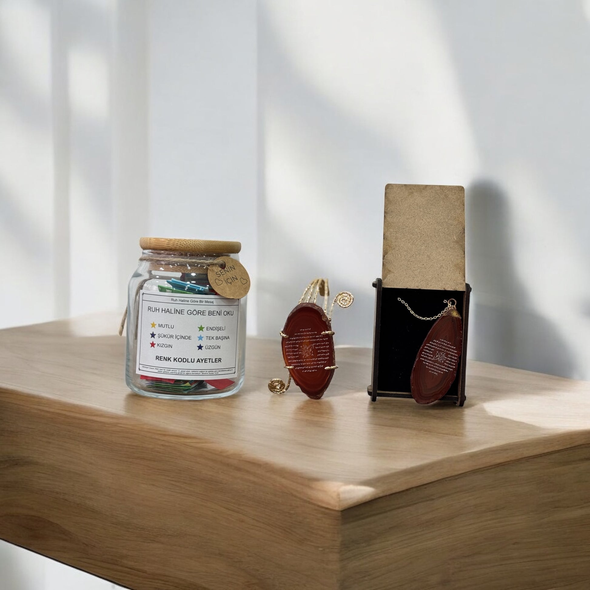3'lü Manevi Hediye Seti (Ayet Kavanozu - Bilezik - Kolye)