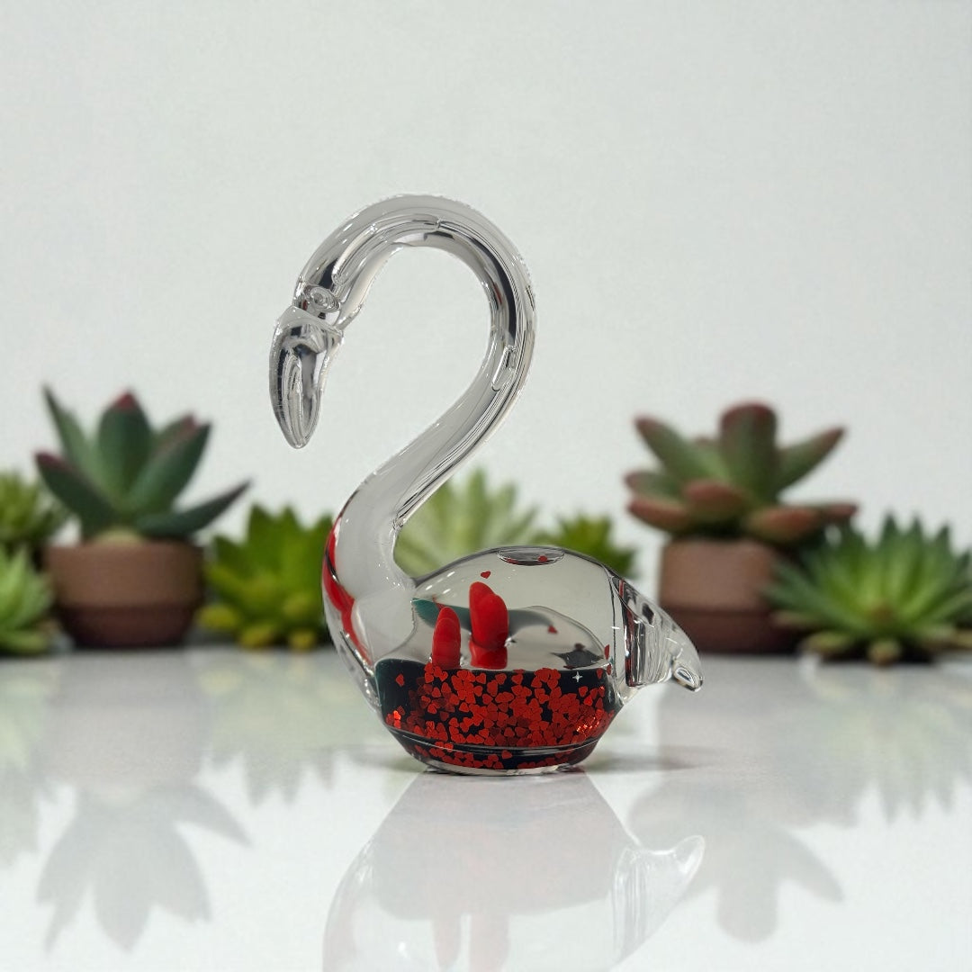 Cam gövde içerisinde sıvı dolgulu kuğu figürü