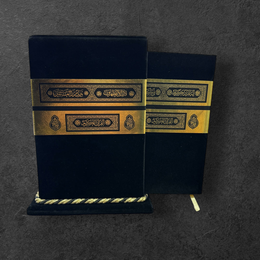 Kabe motifleri ve kadife dokusuyla bu Kılıflı Kur'an-ı Kerim, hem sevdiklerinize anlamlı bir hediye olacak hem de evinizde maneviyat dolu bir köşe oluşturacak.