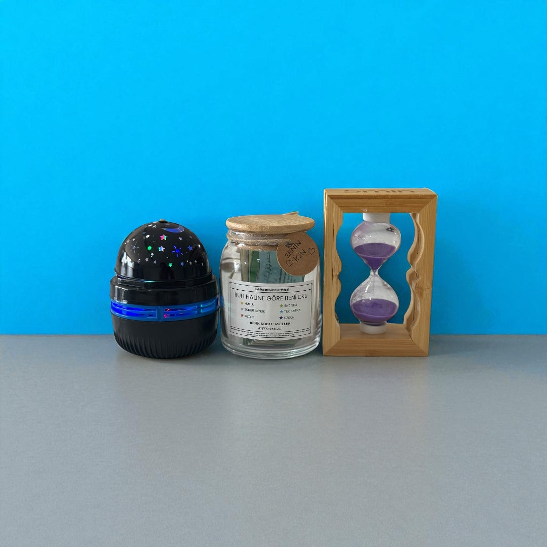 3'lü Hediye Seti (Ayet Kavanozu - Ay Işığı Lamba - 3x3 Işıklı Küre)