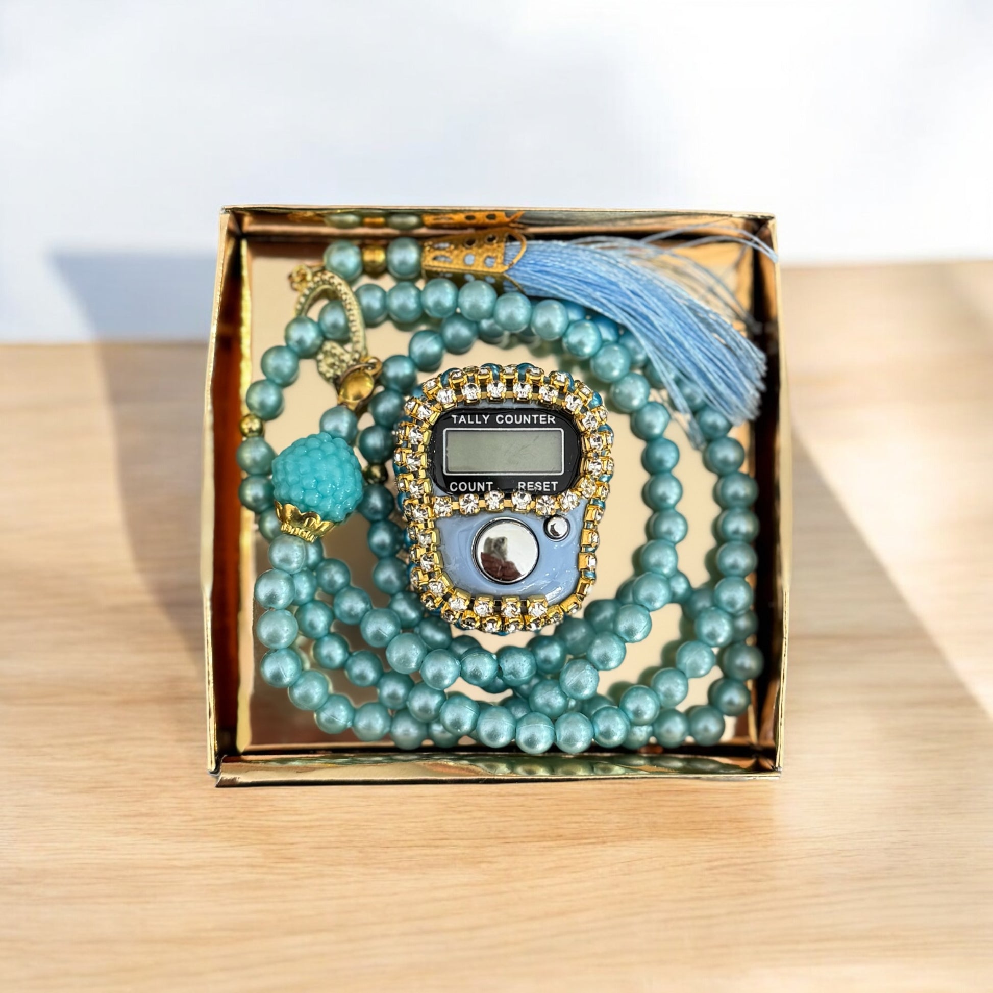 1. Mavi Renkli Doğal Taş Kaplamalı Zikirmatik ve Aynı Renkte Tesbih